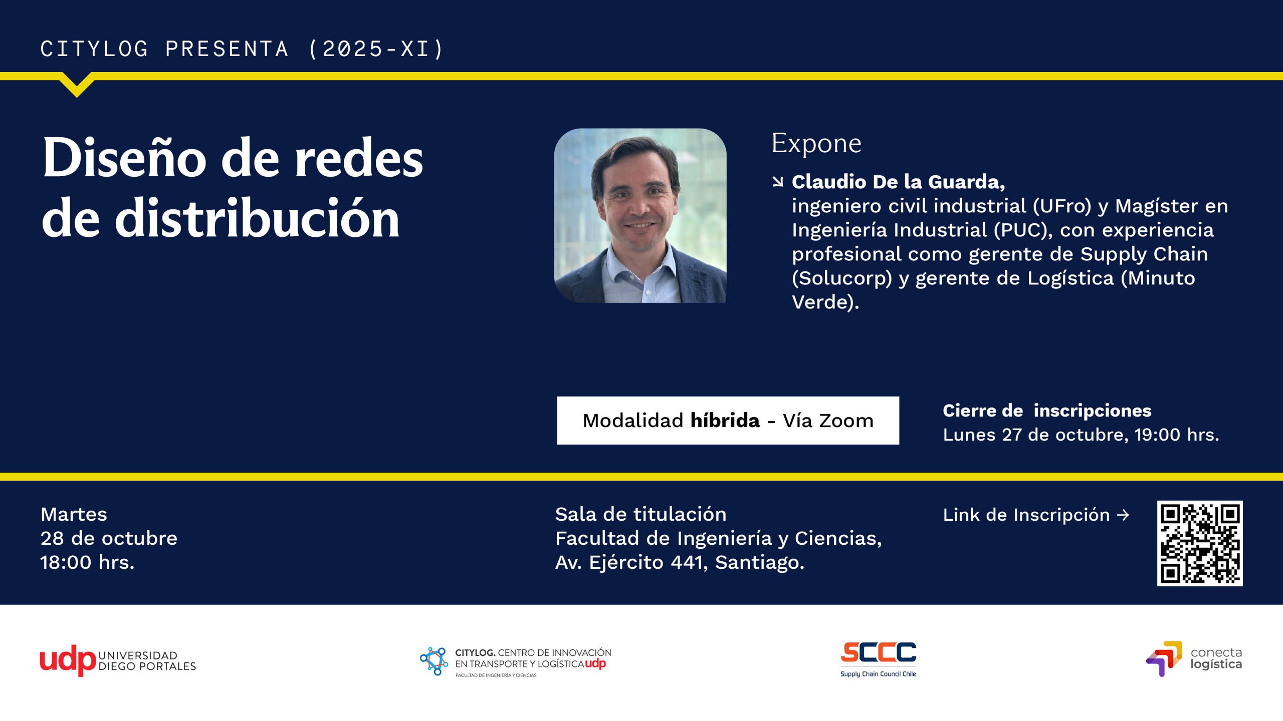 • Claudio De la Guarda, Ingeniero Civil Industrial (UFro) y Magíster en Ingeniería Industrial (PUC), con experiencia profesional como Gerente de Supply Chain (Solucorp) y Gerente de Logística (Minuto Verde).