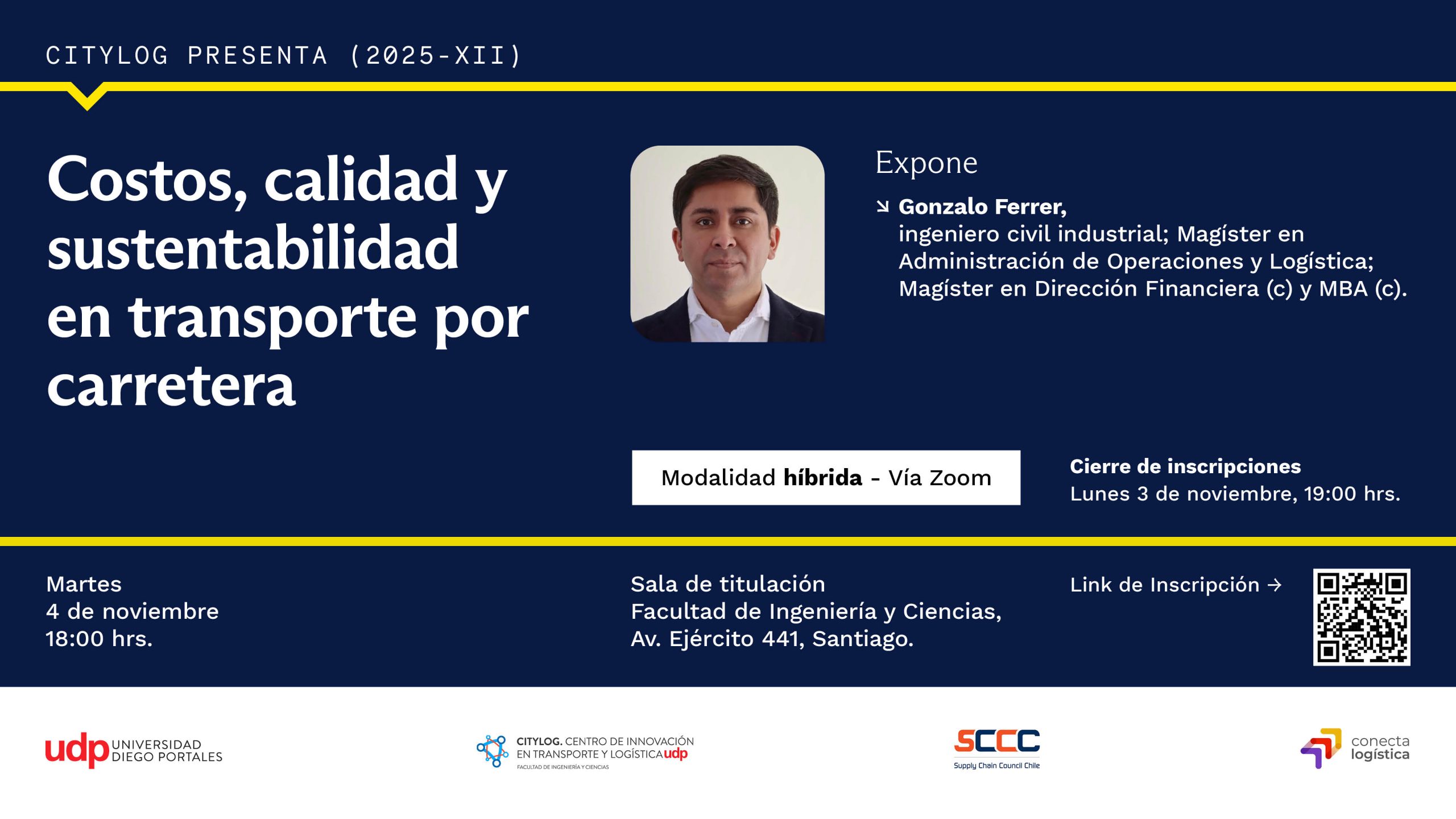 Gonzalo Ignacio Ferrer, Ingeniero Civil Industrial; Magíster en Administración de Operaciones y Logística; Magíster en Dirección Financiera (c) y MBA (c). Experiencia como Socio Fundador (eleva), Partner (Cúbiko), y Gerente de Operaciones en Starco Demarco (Grupo KDM), Transportes Nazar y Transportes Santa María; además de Gerente de Logística en Blue Express y Subgerente de Operaciones en Sotraser.