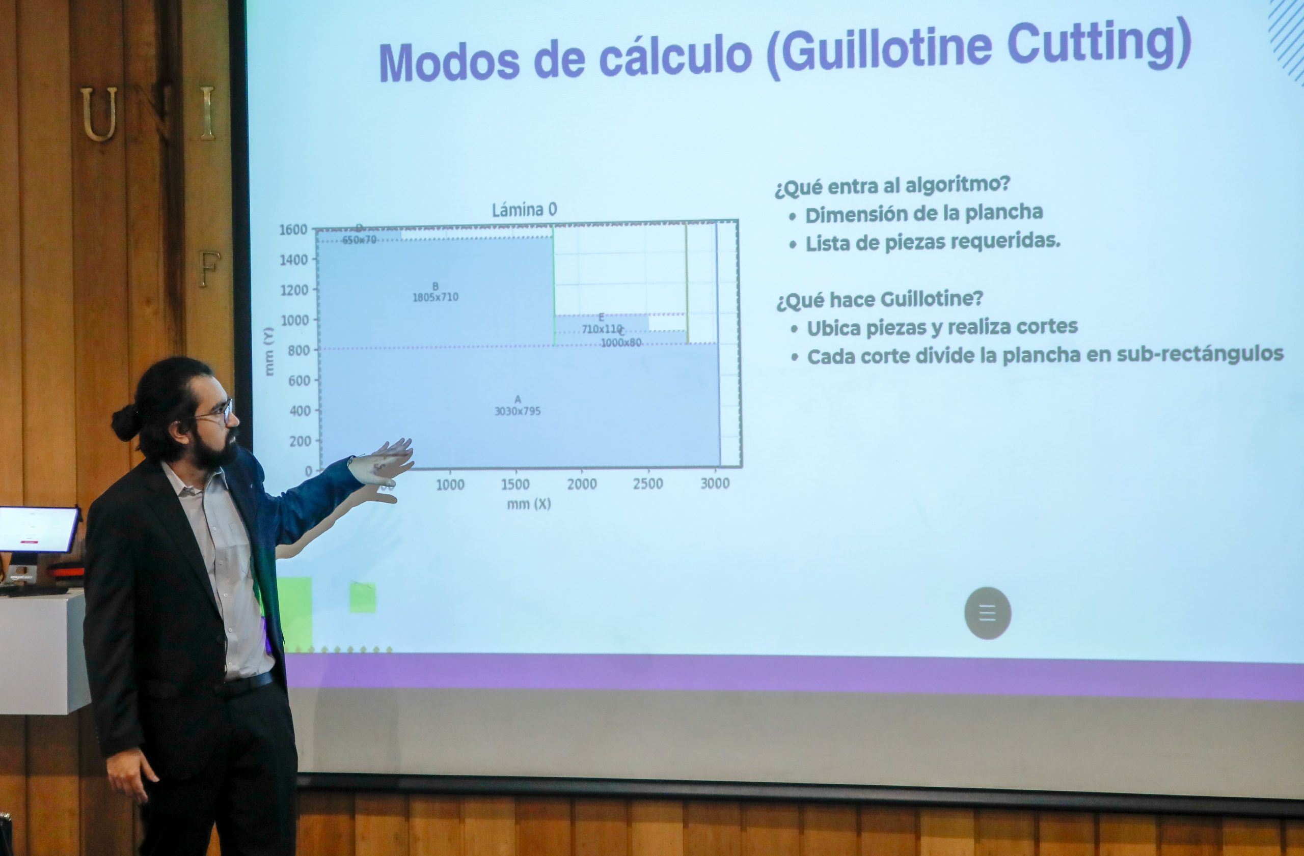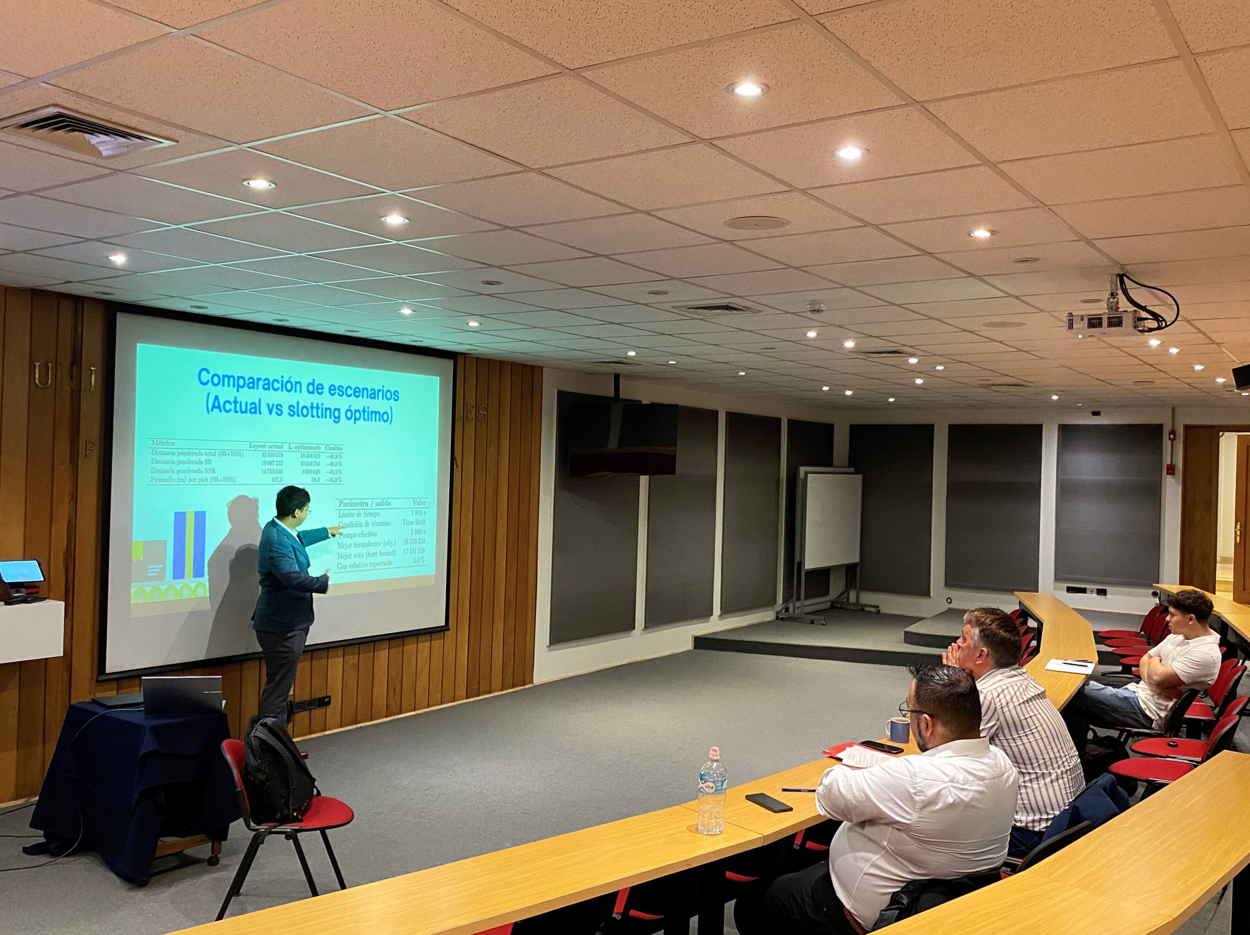 Jozsef Reyes presentó su trabajo “Optimización de slotting mediante Generalized Assignment Problem (GAP)”, realizado con la guía del académico y director del Centro Karol Suchan. La comisión evaluadora contó con el profesor Claudio González.